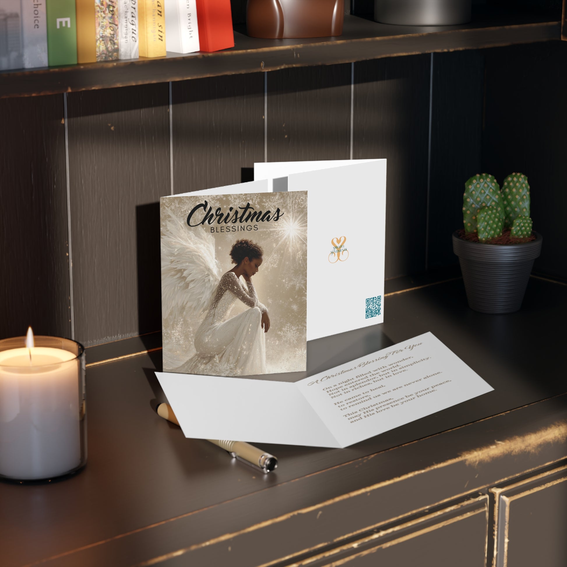 Celebrate a blessed Christmas with the Christmas Blessings design, featuring a radiant African American angel shining under the guiding star of Jesus. This heartfelt image brings warmth and hope to your holiday season, reminding you of the profound blessings that light the way.