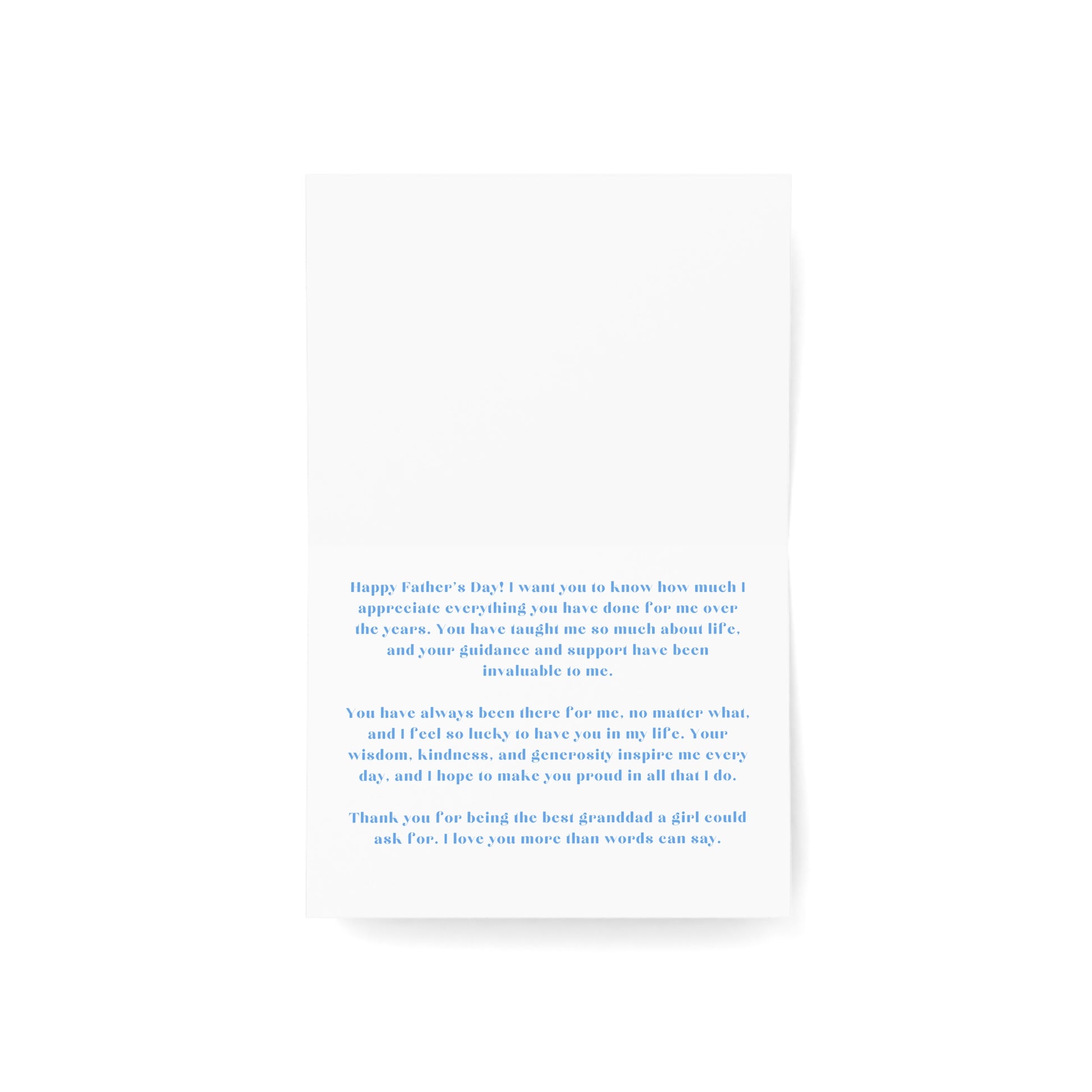 Celebrate the extraordinary bond between a granddaughter and her cherished Granddaddy with our unique and creative Father's Day greeting card. The front of the card proudly displays the heartfelt message, "For a Granddaddy Who Has Taught Me So Much," encapsulating the depth of gratitude and admiration for the wisdom and love he has shared.