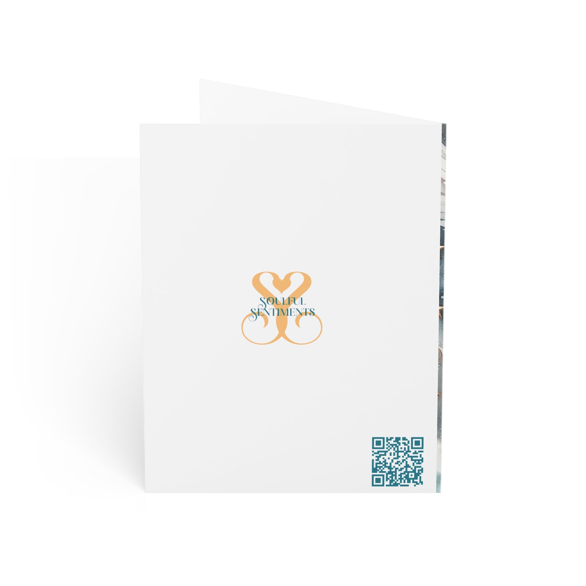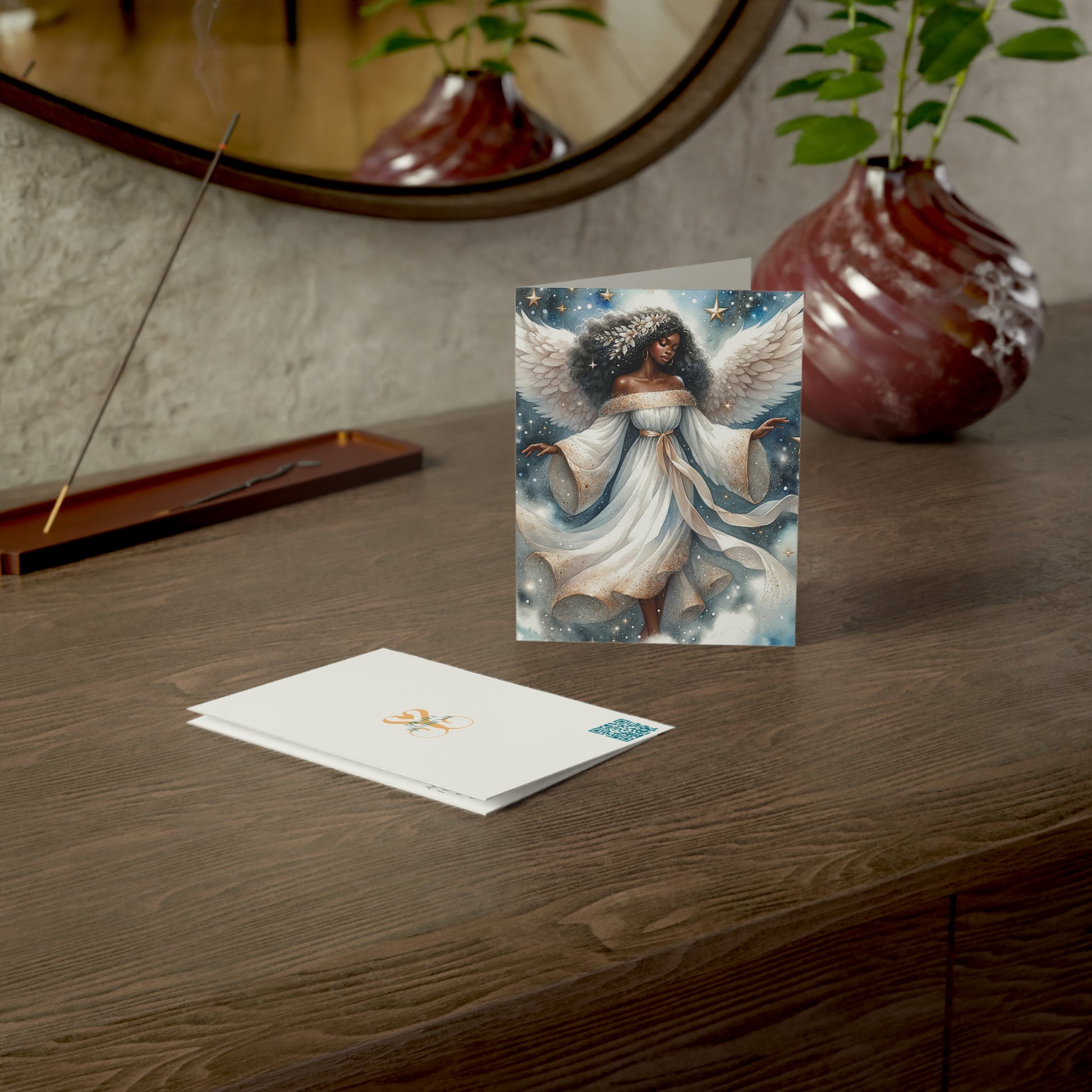 Embrace the radiant message of the season with our "Good News" Christmas card. Inspired by the divine proclamation in Luke 2:10-11, this card features a resplendent African American angel suspended amidst the soft embrace of clouds and the twinkling of dancing stars. Her serene presence captures the profound joy and hope of the sacred announcement, offering a touching reminder of the true essence of Christmas. Crafted with intricate detailing and set against a celestial backdrop, this card is more than just a greeting—it's an invitation to reflect1 on the miraculous wonders of the holiday. Send your loved ones a piece of heavenly good news wrapped in the beauty of this card.