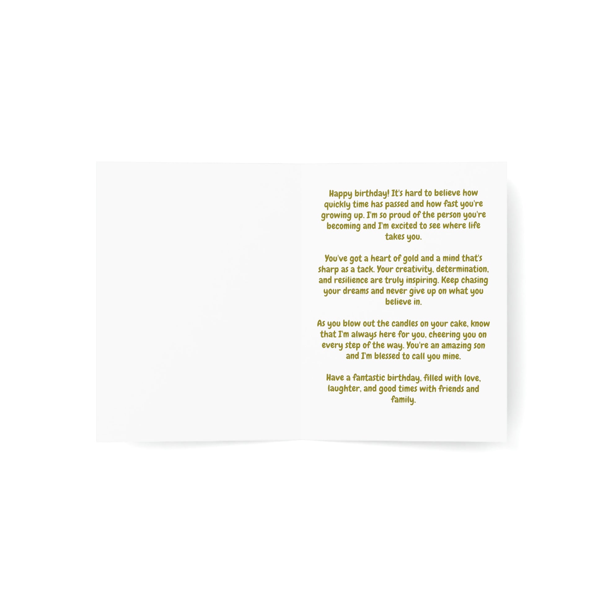 So why settle for a generic card when you can give your son a card that's as unique and special as he is? Order our birthday greeting card for teen sons today and make your son's birthday one he'll never forget!