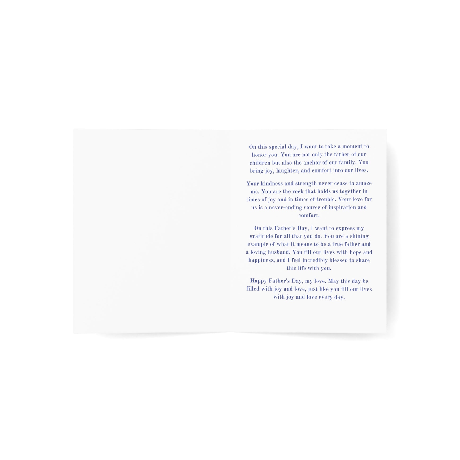 Choose our Father's Day greeting card to honor the incredible father and partner he is. With its captivating design and heartfelt message, this card is a keepsake that he will cherish. Make this Father's Day unforgettable by letting him know how truly special he is. Order now and celebrate the remarkable man who enriches your life every day.