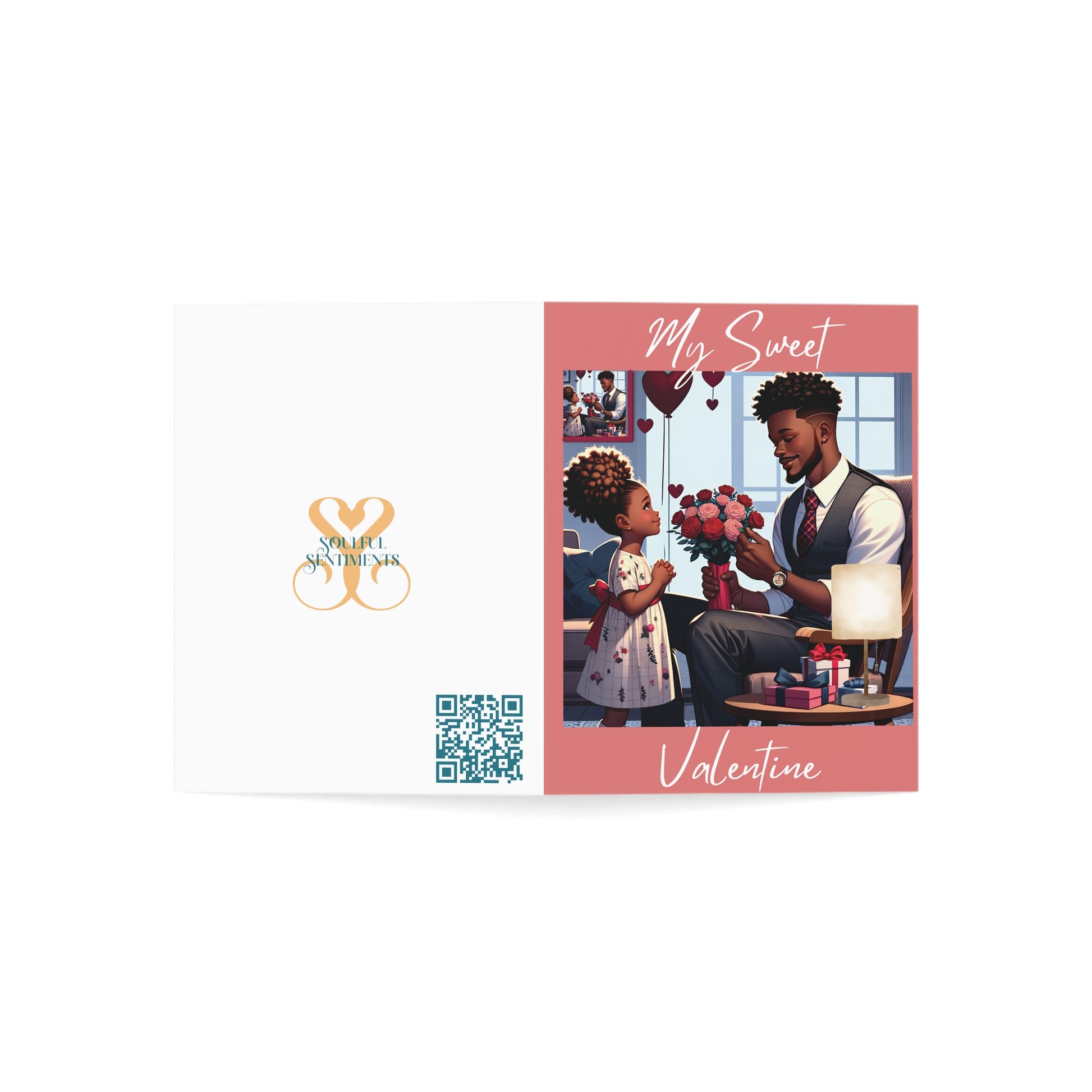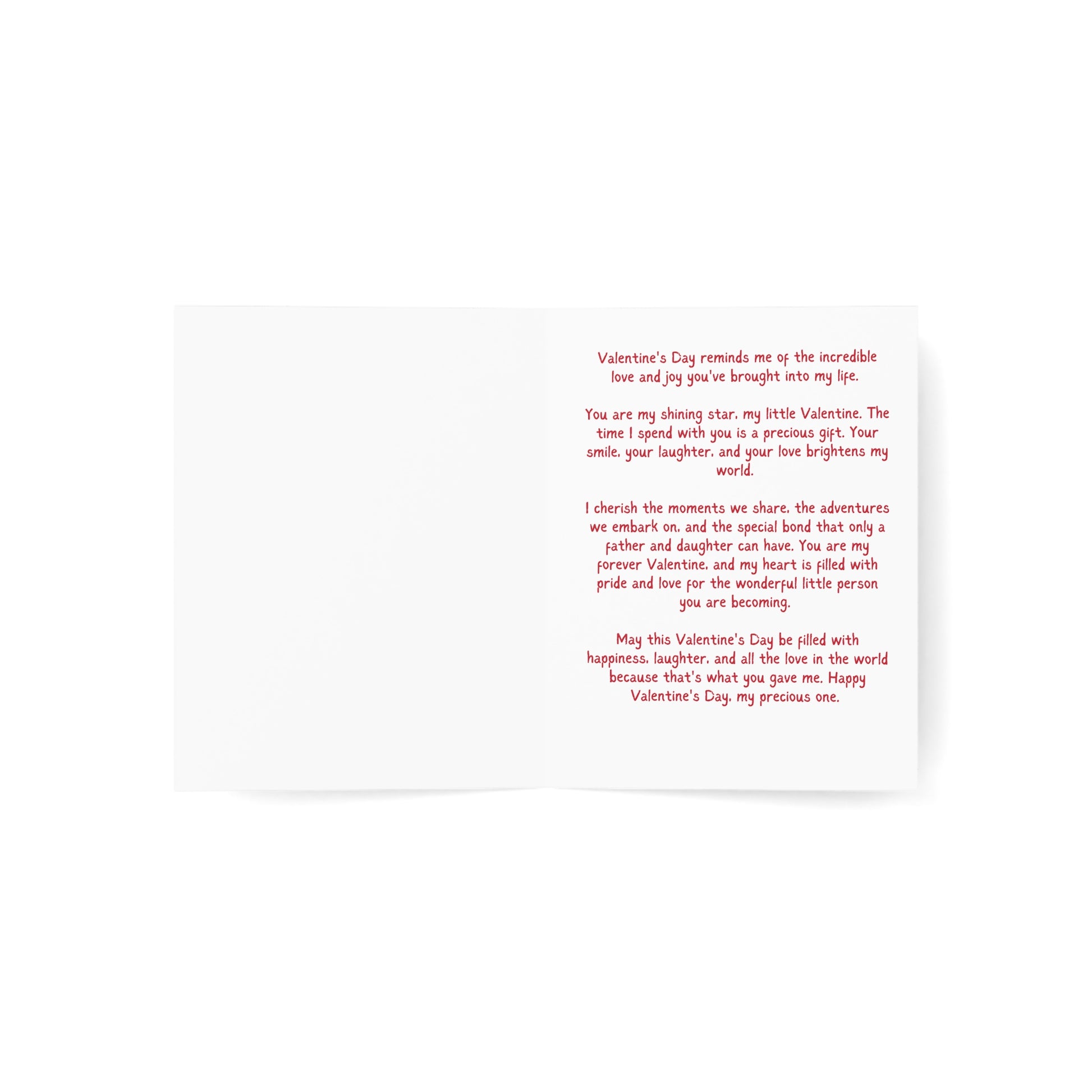 Inside this charming card, you'll find a heartfelt message that speaks to the unique bond between a father and his daughter. It's a message that expresses your love and admiration, letting her know that she's your sweet valentine, always and forever.