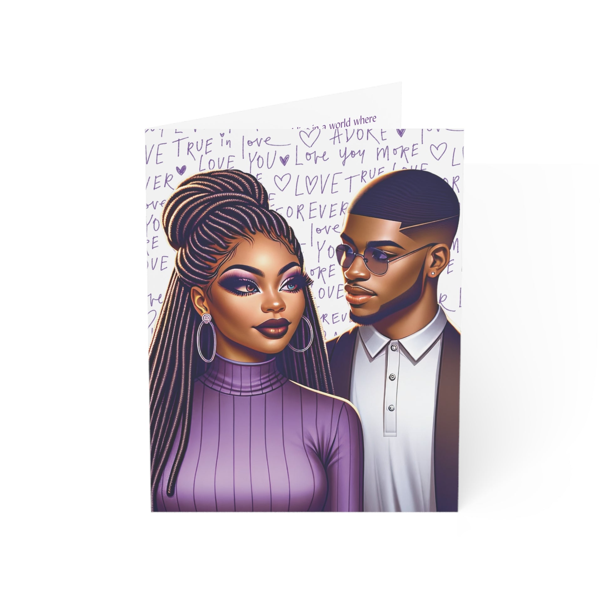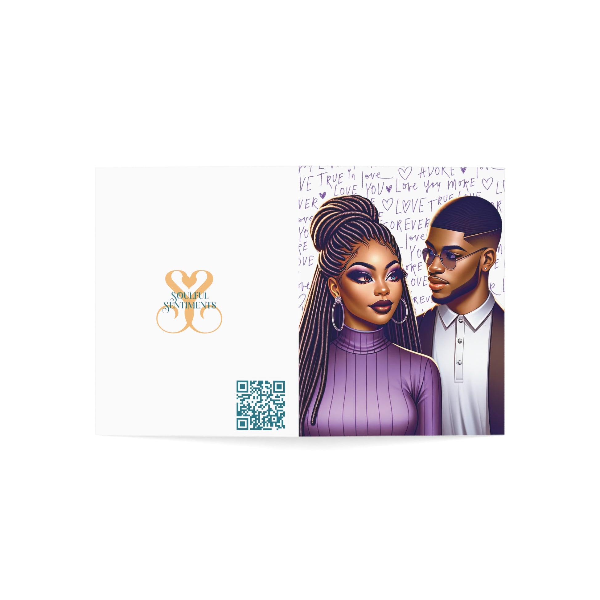 This enchanting card captures a timeless moment of love - a couple lost in each other's eyes. It's a visual masterpiece that speaks volumes about the depth of your affection.