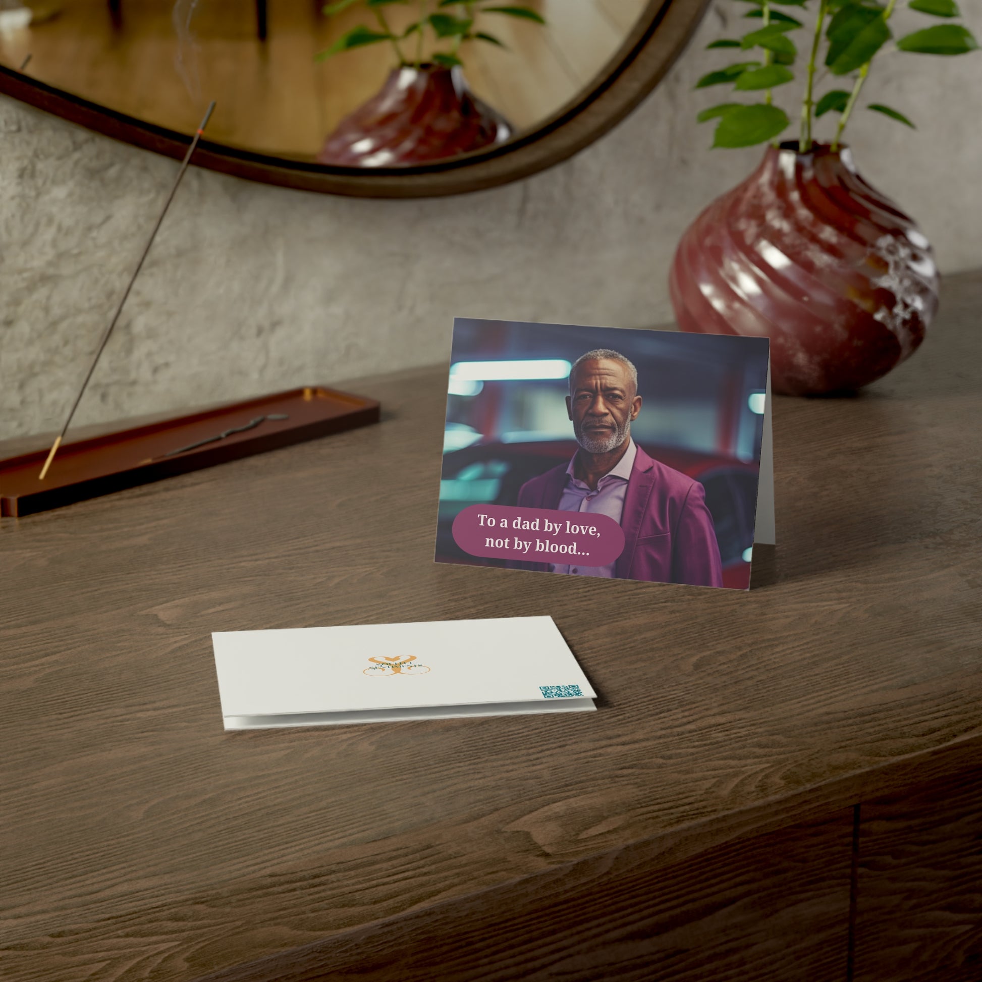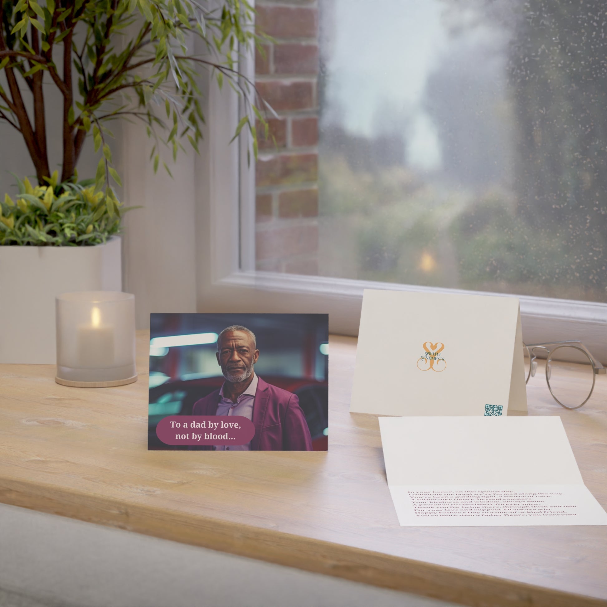 Celebrate the extraordinary bond with your chosen dad this Father's Day with our heartfelt greeting card. The outside proudly exclaims, "To a dad by love, not by blood," capturing the essence of a special father figure who has made a lasting impact on your life.