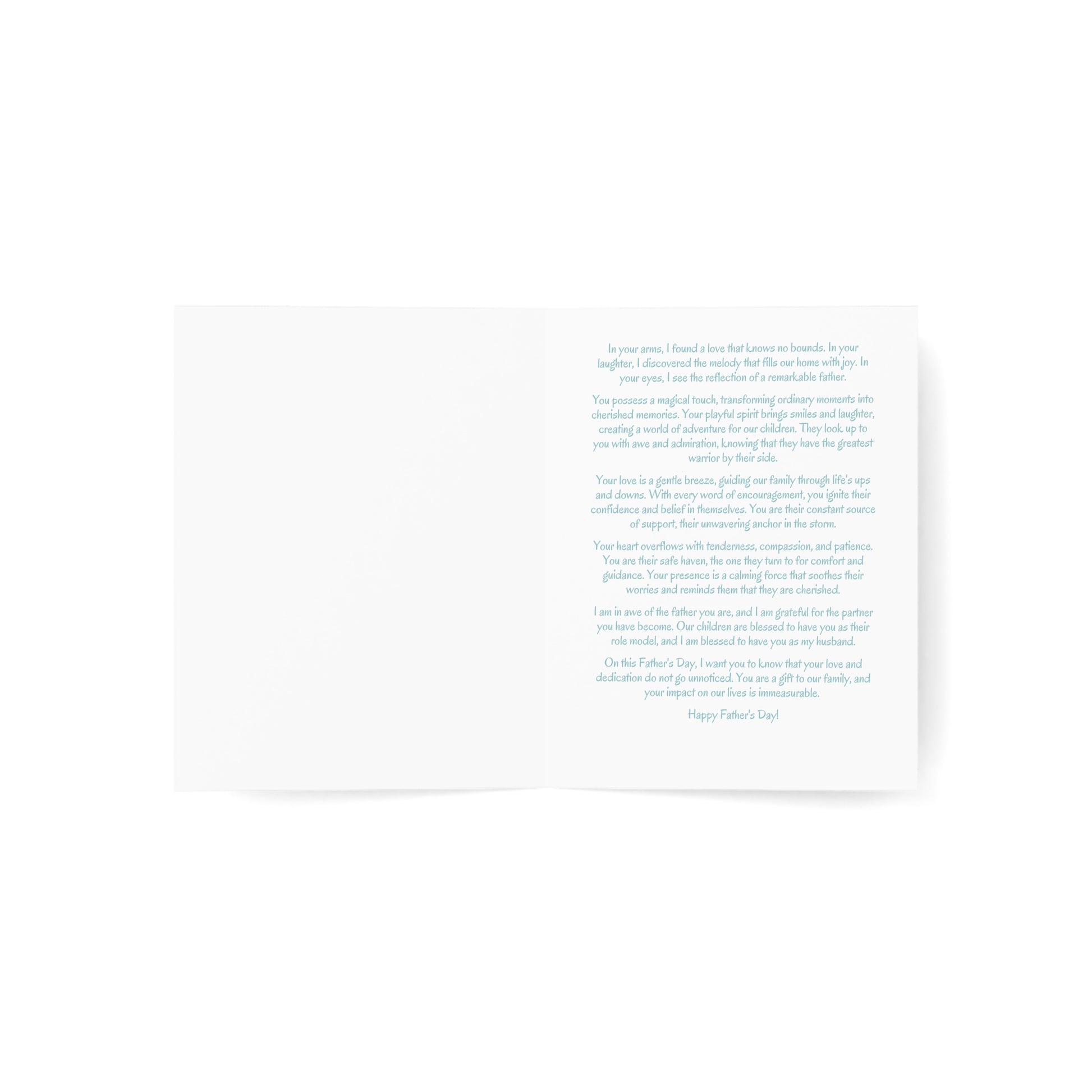 Inside awaits a symphony of emotions, an orchestra of heartfelt expressions that dance across the page. The words beat in perfect harmony, painting a vivid picture of love, admiration, and appreciation for the incredible role your husband plays in your lives. Each word flows like the melodic notes of a song, capturing the essence of his unwavering dedication and the profound impact he has on your family's journey.